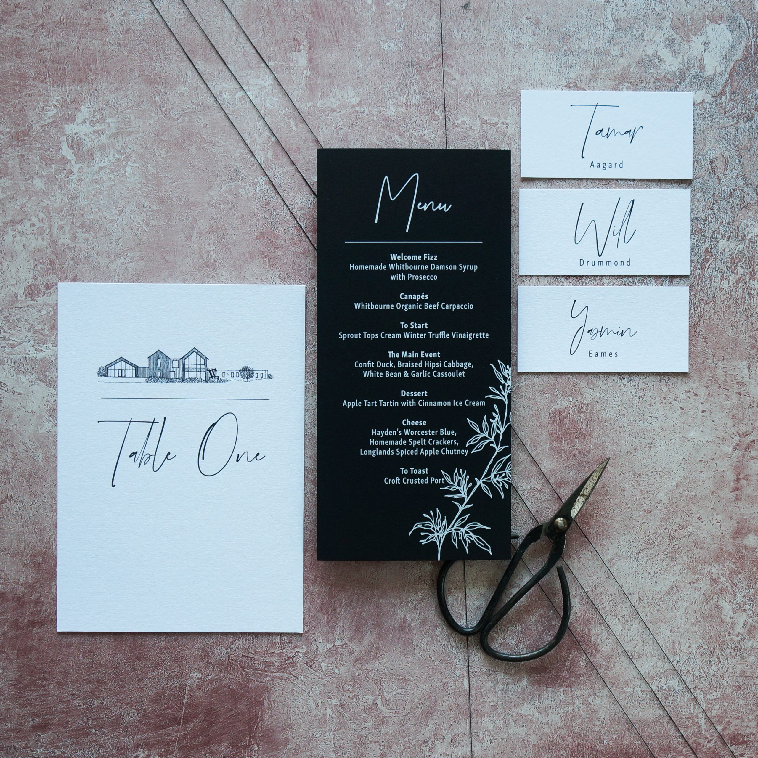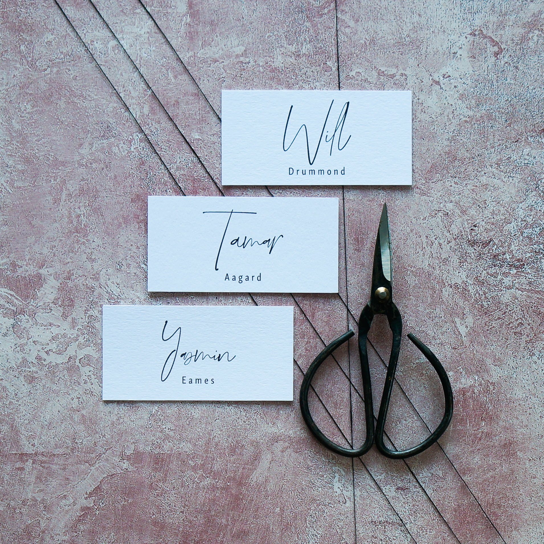 These place settings are a simple and beautiful table decoration, and can also be adapted to put onto favours of your choice. You can have just first names, or first and last as pictured.