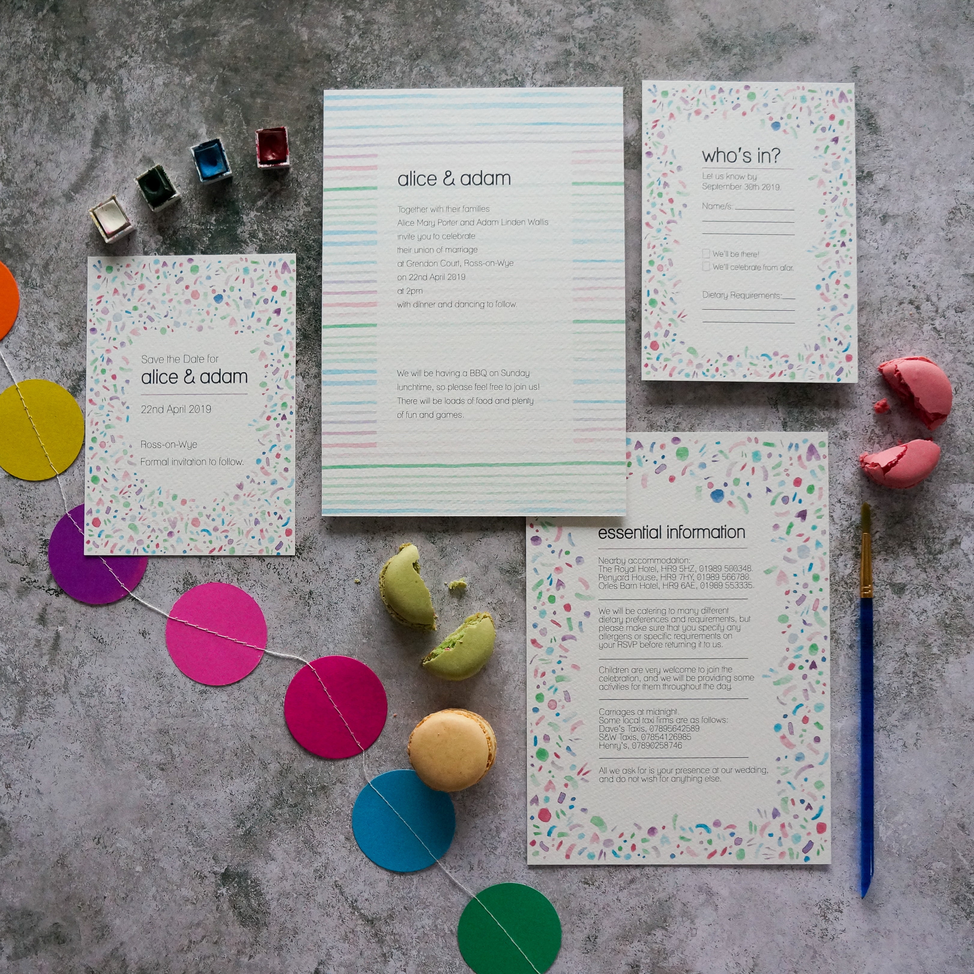 These are information sheets, perfect for telling your guests useful things before they arrive. Some things that can be included are accommodation, directions, local taxi firms, gift ideas, and whether or not you’re inviting children. Some of these ideas can be rather tricky to word, so please feel free to get in touch if you’d like to ask any questions. We’re very happy to do some research, so if you let us know your venue, and the information you’d like to include, we can work out the rest.